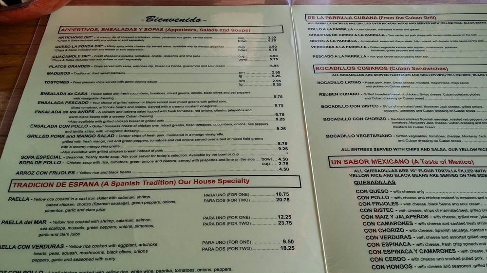 La Fonda Latina Menu